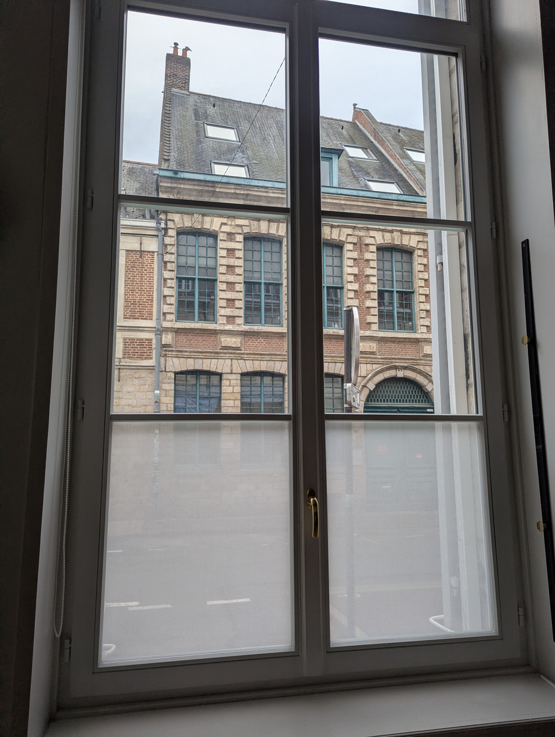 La pose du film pour fenêtre SQUID s’est déroulée selon un procédé de mise en place progressive directement sur la surface vitrée. Le textile a été positionné avec précision puis marouflé à l’aide d’une raclette professionnelle équipée d’un feutre technique afin de protéger la trame du tissu. Cette technique permet d’évacuer l’air et d’assurer une adhérence uniforme du textile sur l’ensemble du vitrage sans altérer la structure du matériau SQUID.