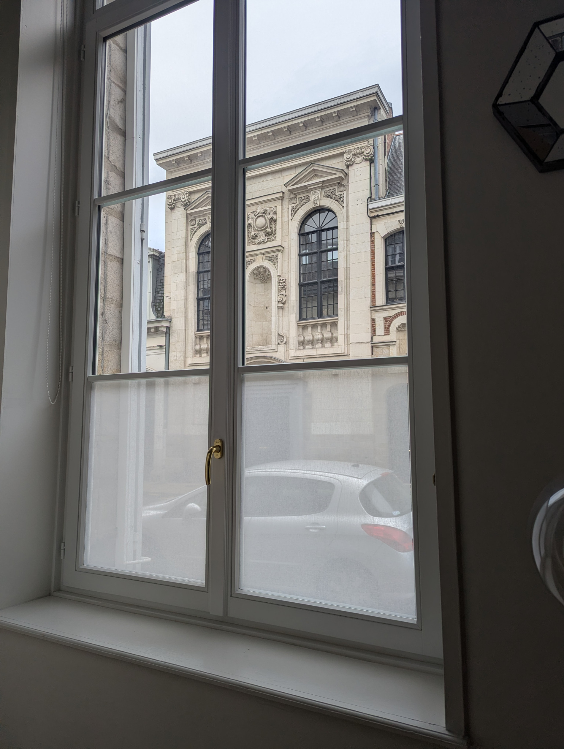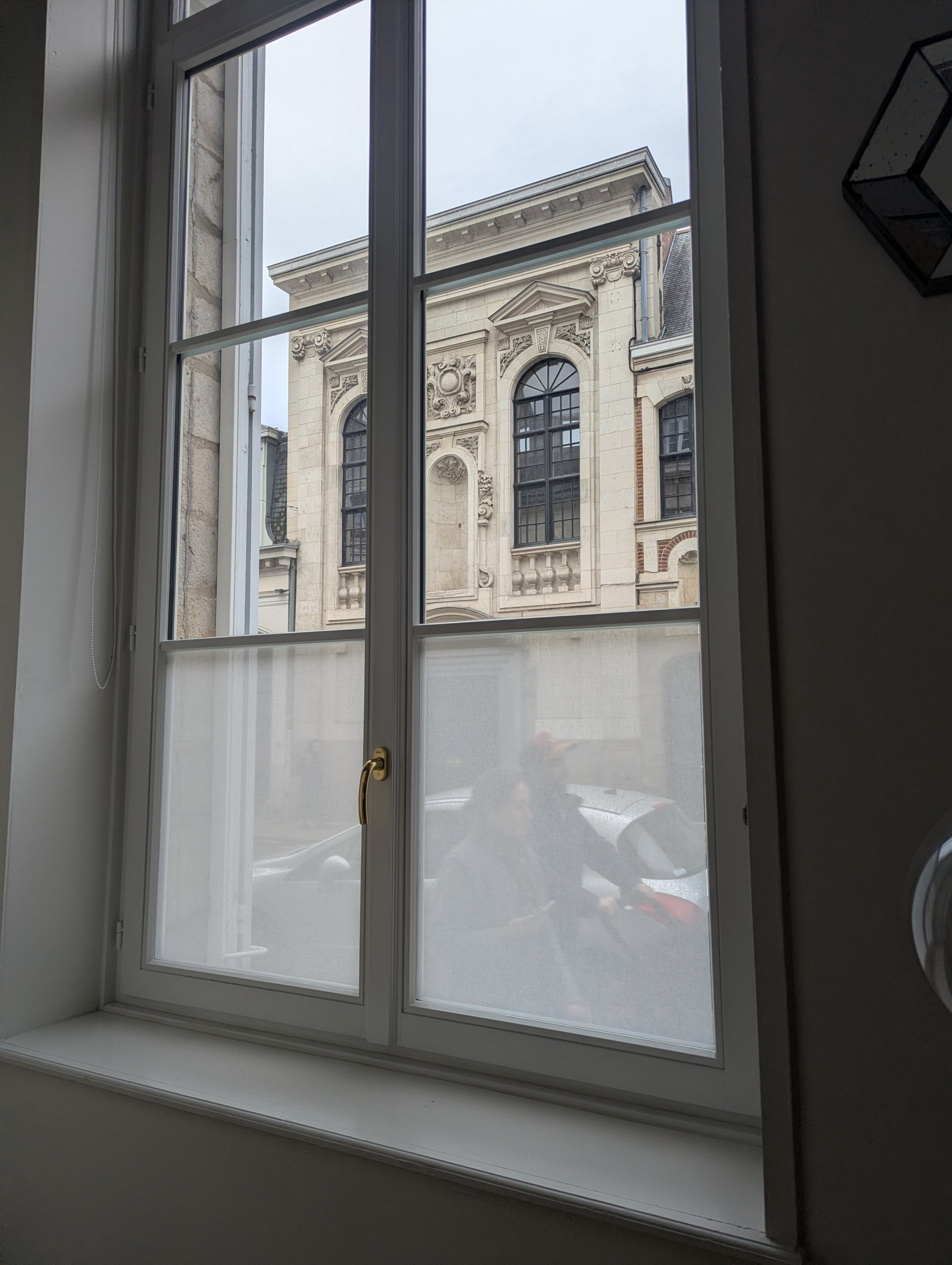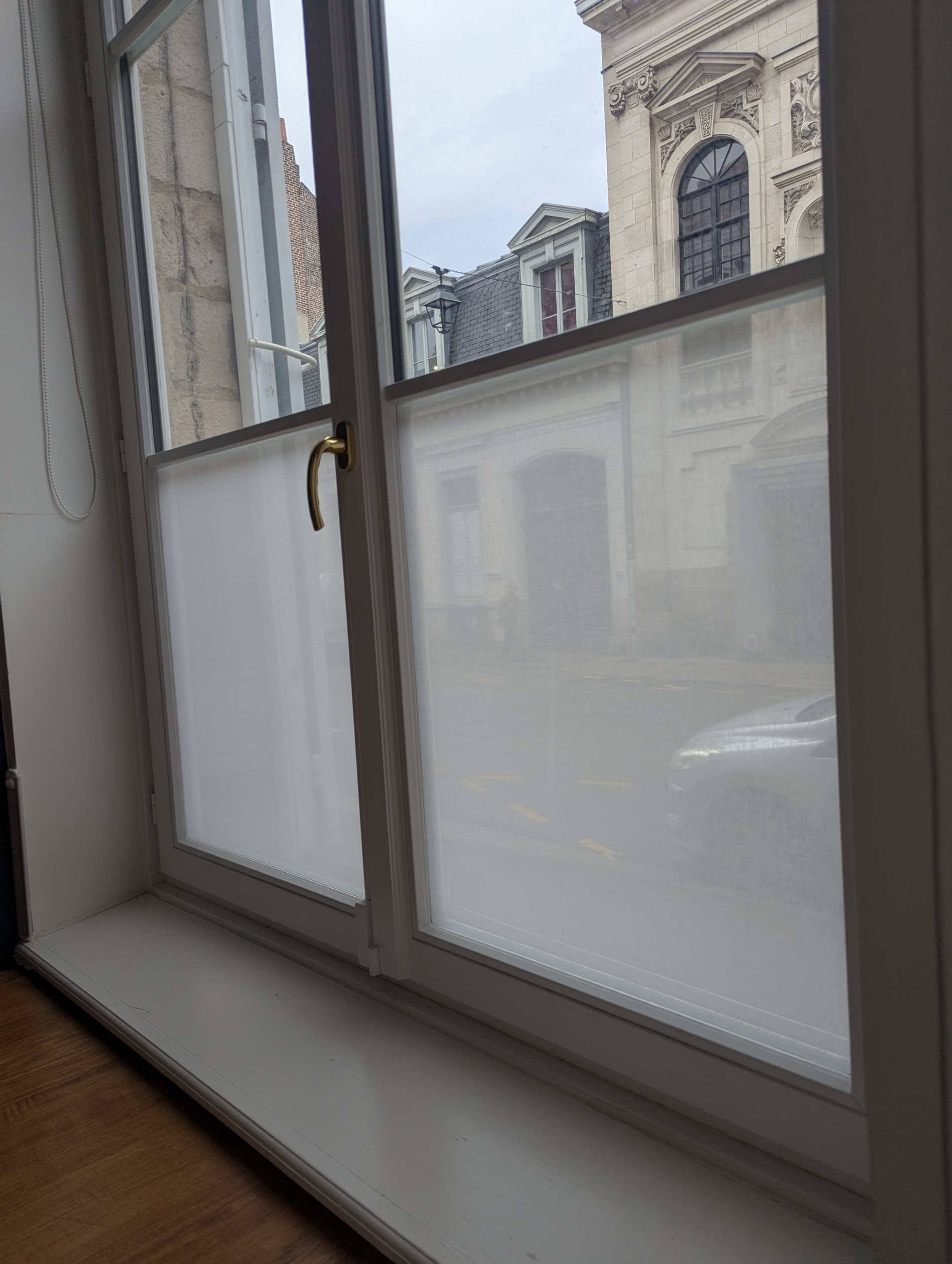 La première étape de l’intervention a consisté en une étude précise des vitrages afin de préparer l’installation du film pour fenêtre. Les techniciens de Smart Films & Cover ont réalisé un relevé détaillé des dimensions, en tenant compte des menuiseries, des joints périphériques et des éventuelles irrégularités du support. Cette phase de métrage est essentielle lorsqu’il s’agit de travailler avec un matériau textile comme celui développé par SQUID, car la précision de découpe garantit un rendu final parfaitement ajusté sur chaque vitrage.